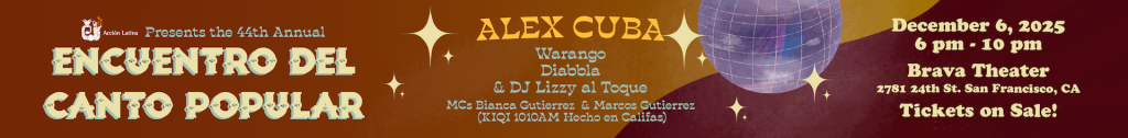 Get ready for an unforgettable night as Acción Latina proudly presents the 44th Annual Encuentro del Canto Popular! Join us at Brava Theater on 24th Street December 6, 20205 for a spectacular evening of music and culture to raise funds for Acción Latina and El Tecolote Newspaper.